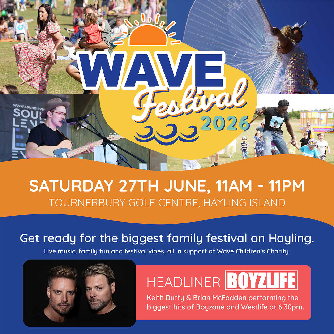 The Wave Festival returns in 2026 with live music from BOYZLIFE and local bands, local food, bars and family friendly activities. The Wave Festival is a family friendly community festival designed to offer something for both adults and children. Alongside a full programme of live music, many of the main activities are included with your ticket, helping families enjoy the day without extra costs. Activities are planned to include a range of family entertainment such as inflatables, face painting, pedal go-karts for children and adults, a young children’s play area, bubbles, themed attractions and more. Activities are subject to change. A wide selection of local food vendors will be available throughout the day. For guests aged 18 and over, there will also be licensed bars serving beer, wine and cocktails. Live music will run from 11:00am through to 7:15pm, featuring a headline performance from BOYZLIFE at 6:30pm, alongside an eclectic mix of local bands and South Coast musicians. After the live music, the festival continues with Soal’s Ibiza House Party, running until 10:30pm. The Wave Festival is organised by Wave Children’s Charity (charity number 1190803). While the event is professionally delivered with accredited security, first aid, facilities and event staff in place, it is also supported by a dedicated team of volunteers. All profits raised help support local charities and Wave’s work with young people on Hayling Island.